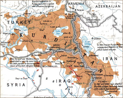 Het Koerdische volk is één van de oudste volkeren ter wereld (12.000 jaar). De 40 miljoen Koerden beschikken nog altijd over geen enkel land waarvan de grenzen zijn herkend. Het is op heden ook het enige volk ter wereld dat geen enkele vrijheid kent. Le peuple kurde est l'un des plus anciens de la planète (12.000 ans). Sa population, forte de quelque 40 millions d'individus, ne dispose d'aucun pays aux frontières reconnues. C'est aussi, à l'heure actuelle, le seul peuple au monde à ne bénéficier d'aucune liberté. |